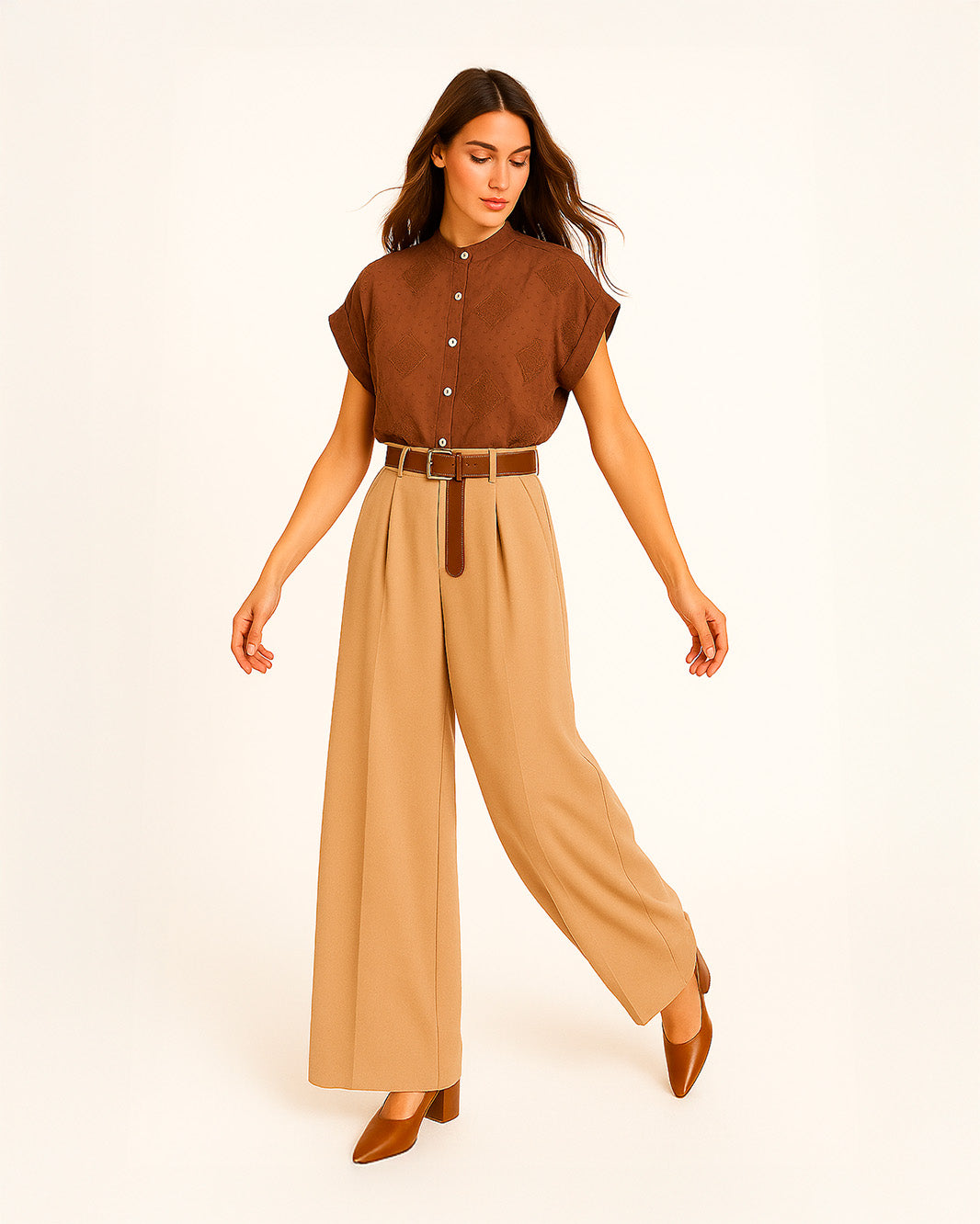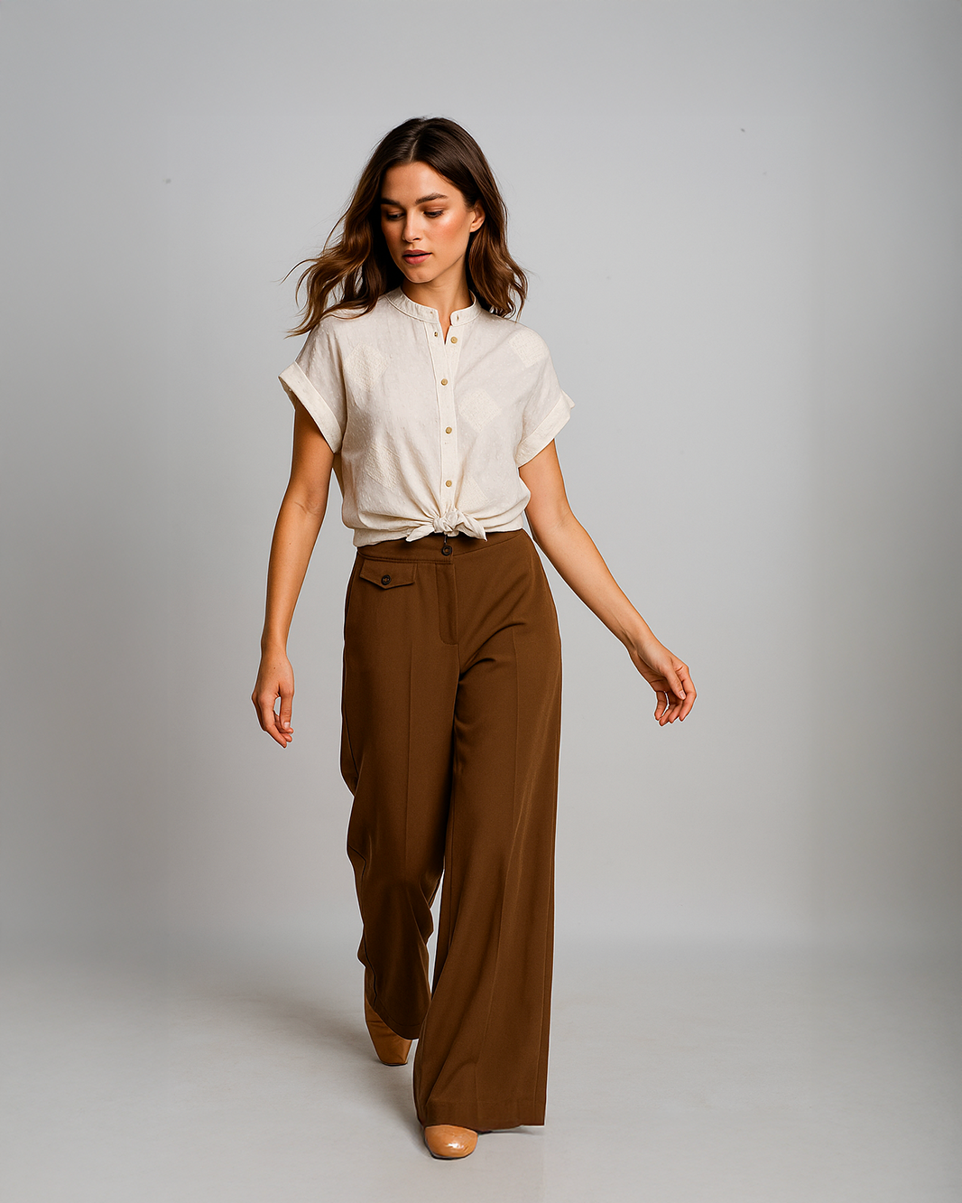 Camicia cropped in jacquard. Con collo alla coreana, bottoni frontali e nodo regolabile, presenta una texture ricercata a rilievo che aggiunge personalità ad un capo fresco e versatile.