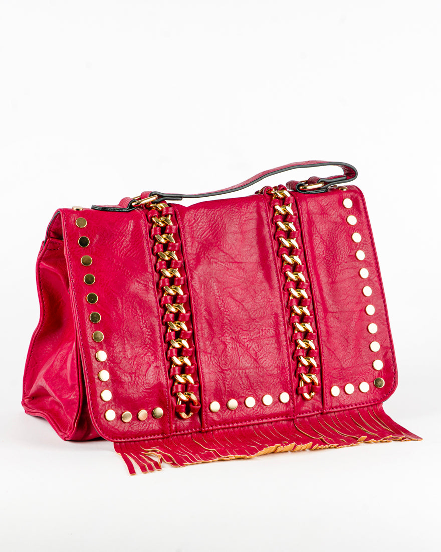 Borsa quadrata con borchie e frangie