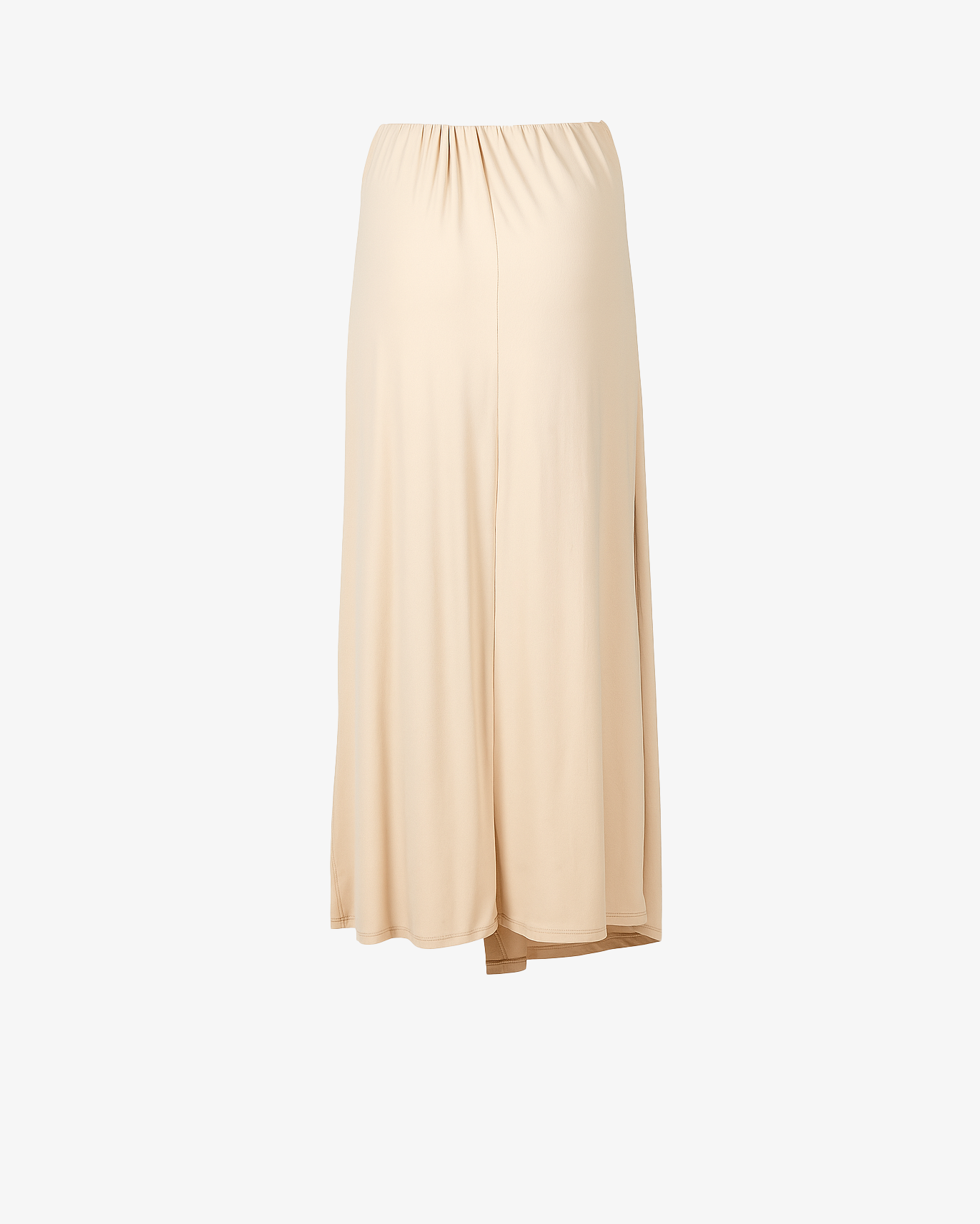 Gonna midi a portafoglio in tessuto fluido, con dettaglio fibbia dorata. Elegante e versatile, perfetta per look da giorno e da sera grazie alla linea morbida e allo spacco frontale che dona femminilità e movimento.